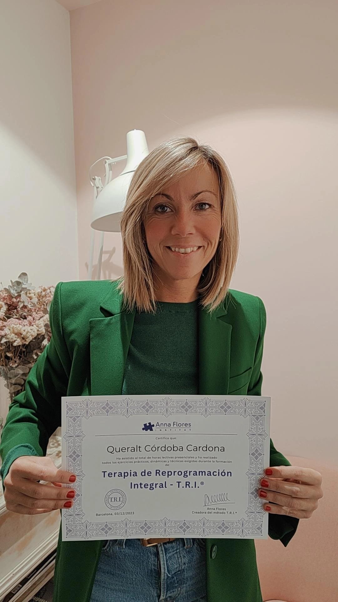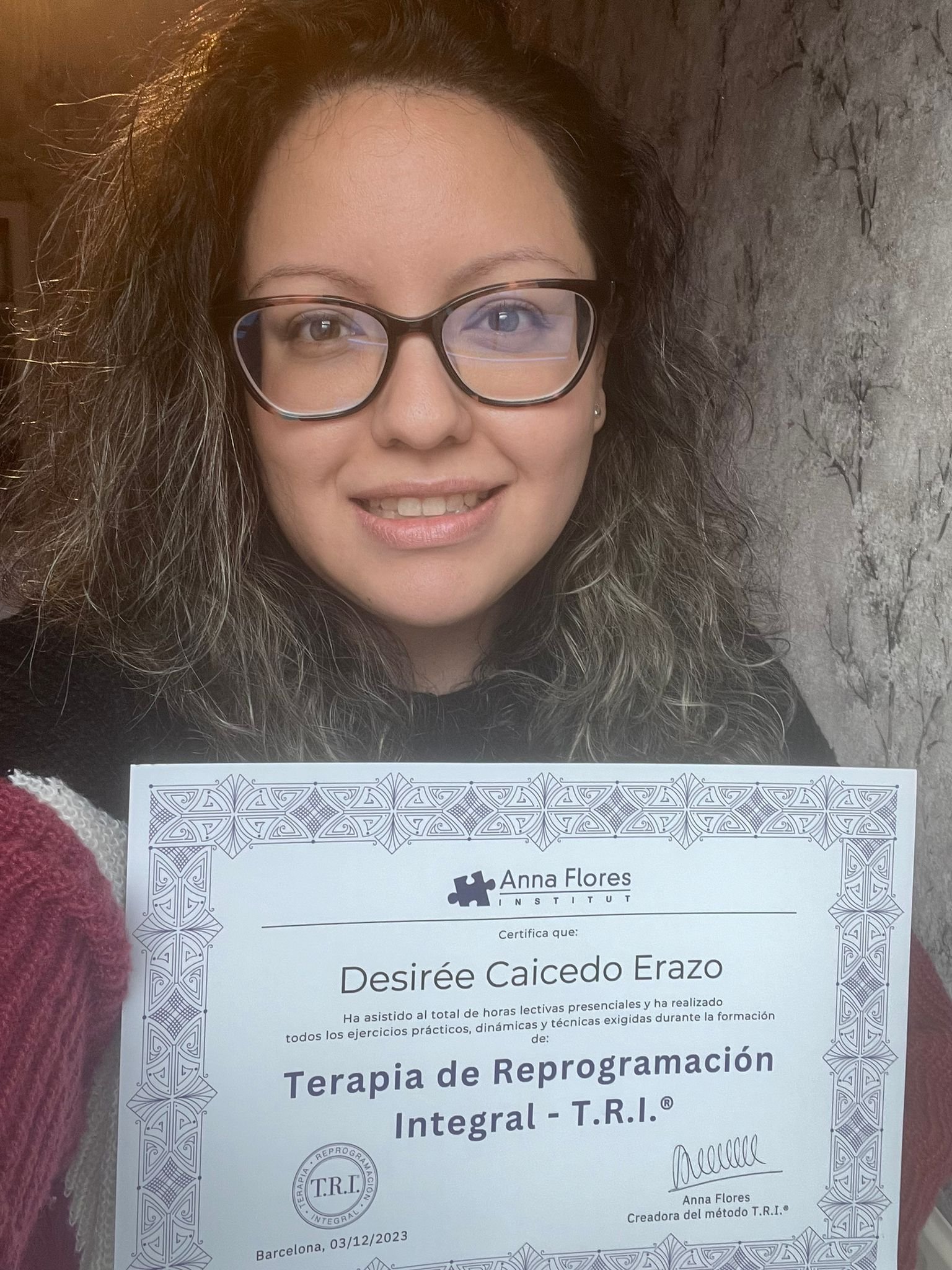 No puedo sentirme más orgullosa de haber cursado la primera edición de la formación de T.R.I. ® de la que no tengo duda va a suponer un punto de inflexión a nivel profesional en mi carrera. En el curso de Anna Flores para certificarte en T.R.I.®, no sólo te formas, lo más importante es que te prepara para casos reales , muy distinto a otros cursos que he asistido con formadores que no ejercen con clientes y que no te preparan para lo que te vas a encontrar en la realidad de tus sesiones.